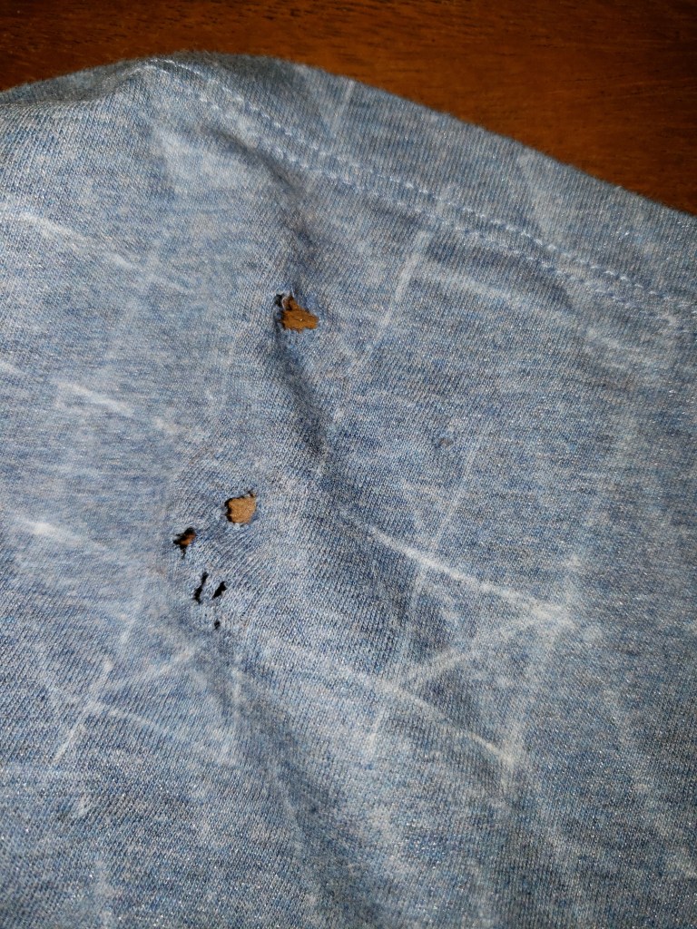 Les avez-vous aussi ces petits trous fâcheux dans vos t-shirts en Jersey ? Un peu dans le bas, bien centrés à la vue de tous.