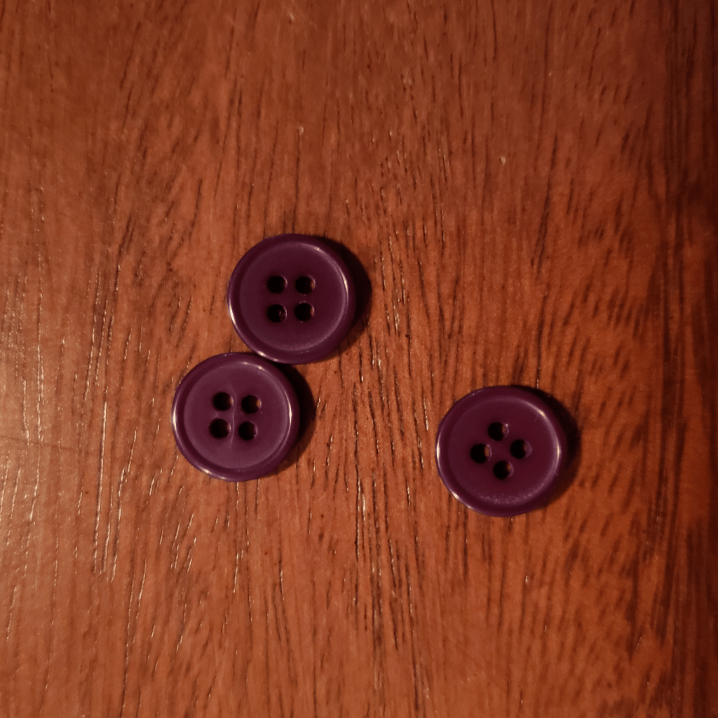 Dans ce cas-ci, j’avais un ancien t-shirt qui avait rétréci au lavage (comme vous constatez ci-dessous il a déjà servi à d’autres projets, notamment un coussin et la patch intérieure ci-dessus). J’en ai aussi profité pour récupérer les boutons!