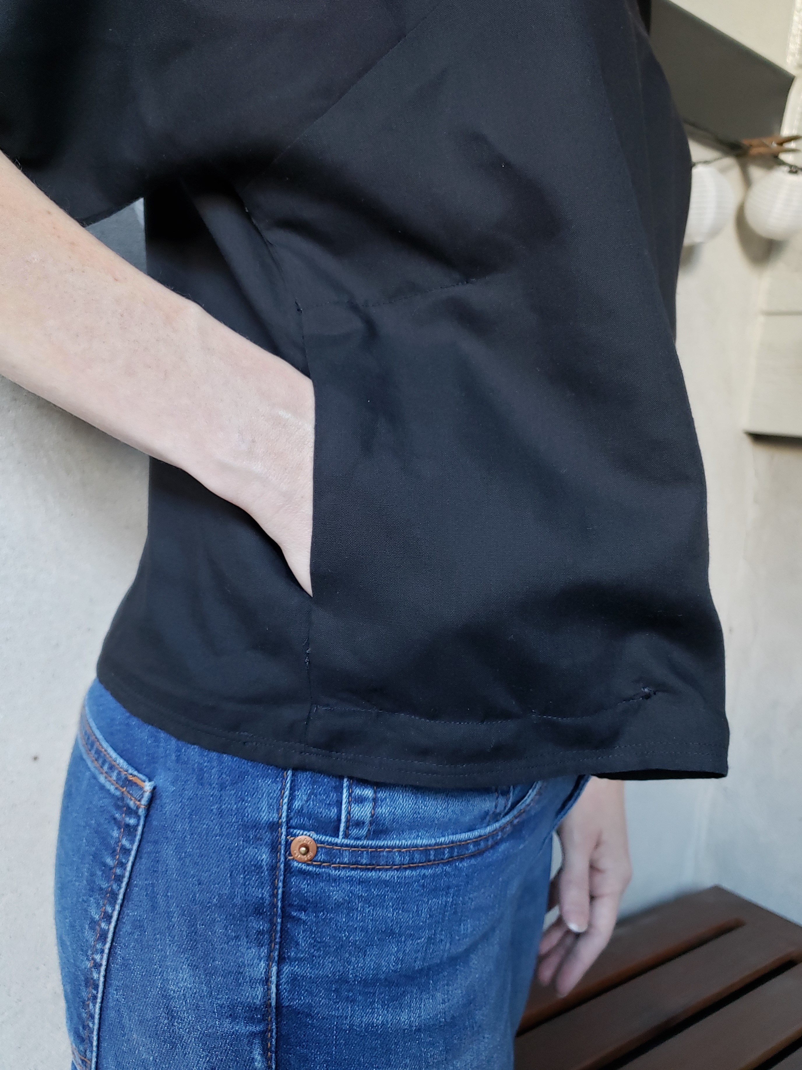 - J’ai ajouté une poche, je veux des POCHES! Pourquoi les vêtements pour femme n’ont-ils jamais de poches?! Le patron s’y prête très bien à mon avis. J’ai simplement emprunté la pièce « poche » à un autre patron et hop le tour est joué!