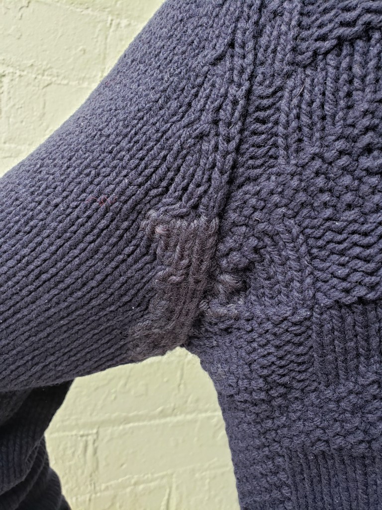 Outre le fait que je vois maintenant ce chandail à peu près à tous les jours, voici d’autres effets constatés par Monsieur suite à cette réparation: