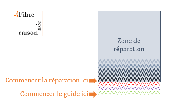 Ici sont listés deux points que j’ai utilisés pour cette réparation et les petits tutoriels pourraient vous éviter l’étape du guide en fil à coudre.